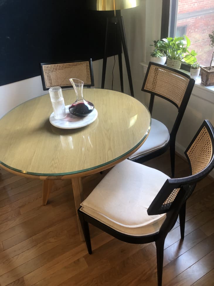 This is the before pic of the in great condition round coffee table.
